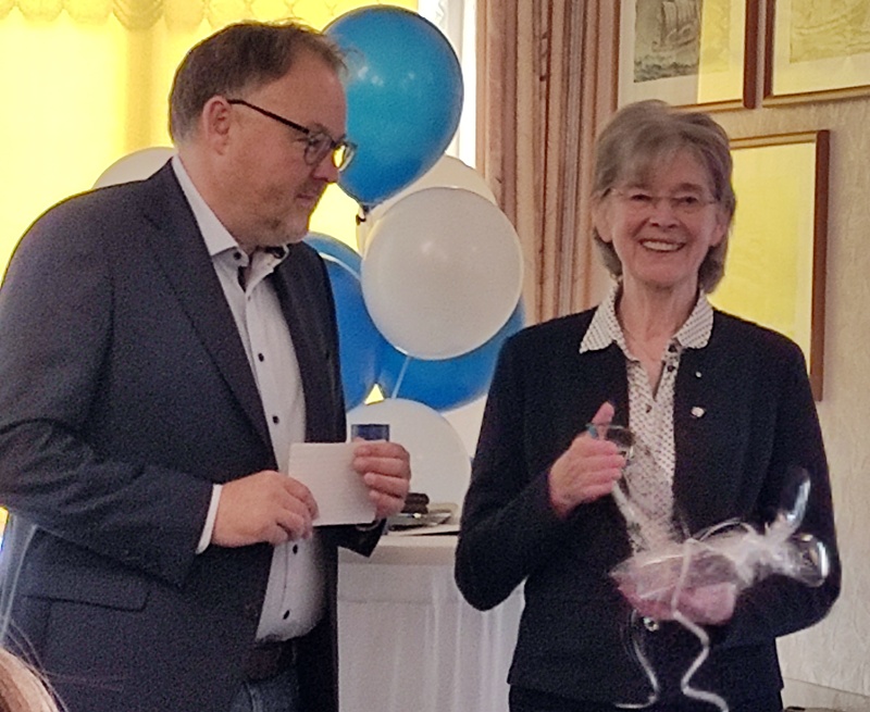 Aktiv ist Wilma immer noch. Zurzeit spielt sie erfolgreich in der 4. Herrenmannschaft mit. Ein Ende ist nicht abzusehen. Wir wünschen Wilma noch viele erfolgreiche Jahre. Das Bild zeigt Wilma bei der Ehrung bei der 100-Jahr-Feier durch den 1. Vorsitzenden des TuS Collinghorst Horst Junior.